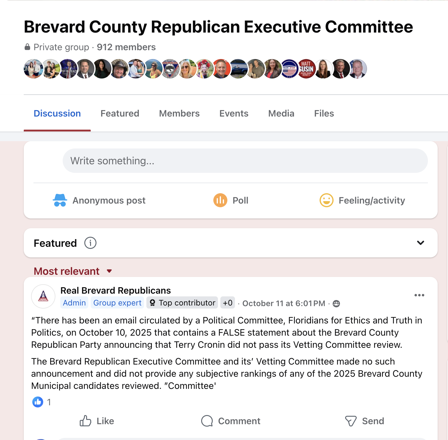 The Brevard Republican Executive Committee (BREC) as referenced above, made an immediate announcement to clarify the REAL TRUTH. SEE BELOW