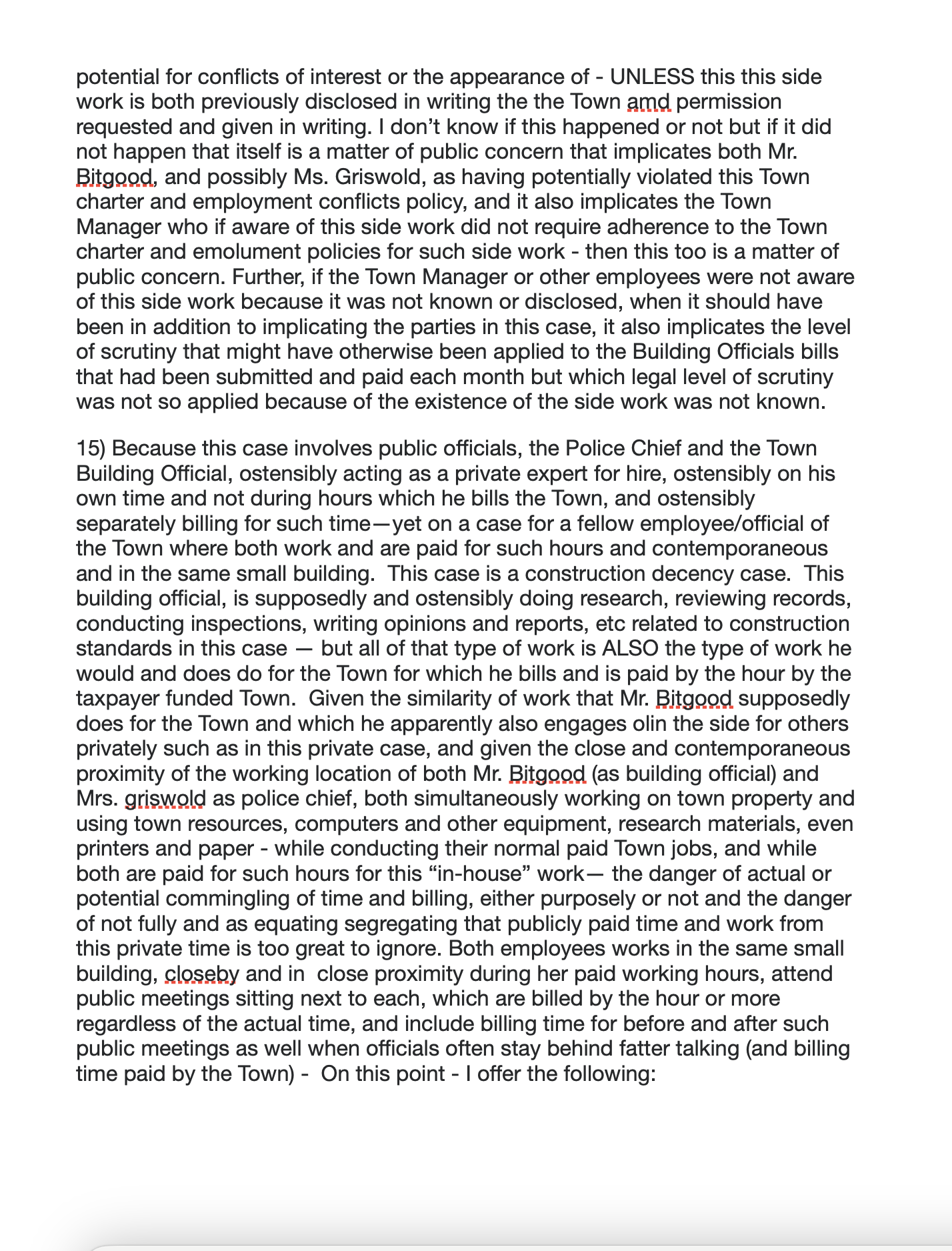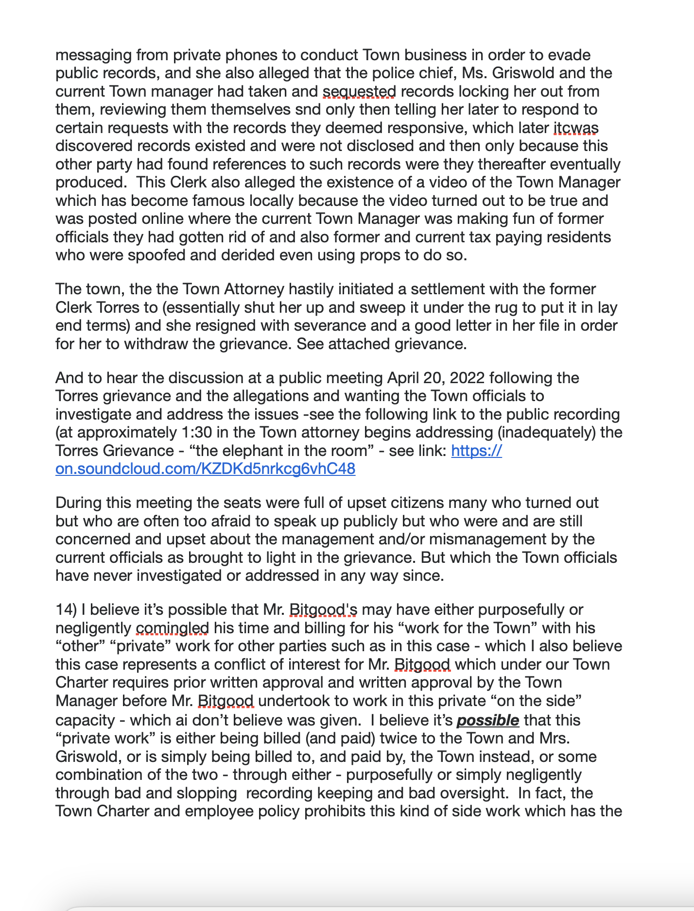 Mayor Dennington has harassed and continues to try to intimidate former police chief, Melanie Griswold. Her behavior and actions are those of a STALKER with no basis, no facts, and no involvement. In 2022, Alison Dennington tried to assert herself into Griswold’s personal case against the builder of her home project.
