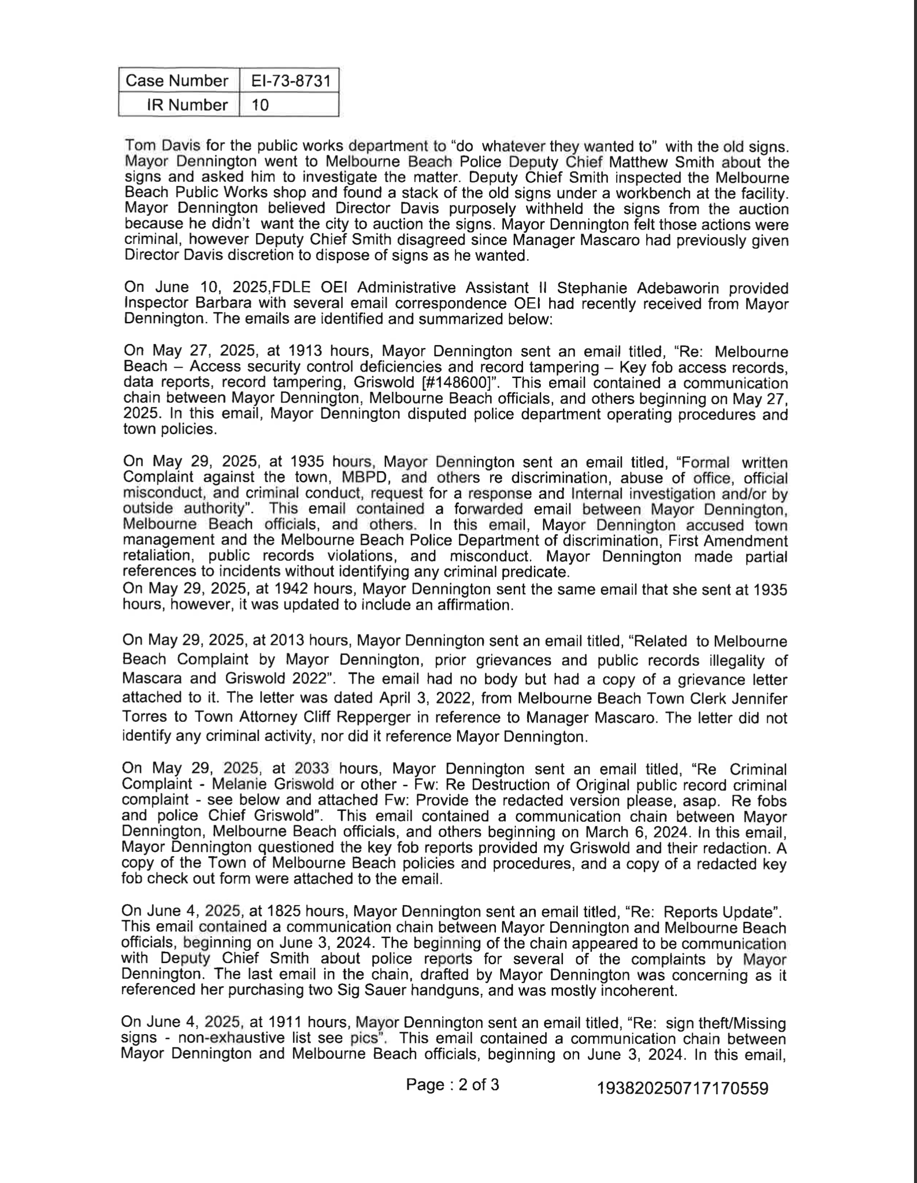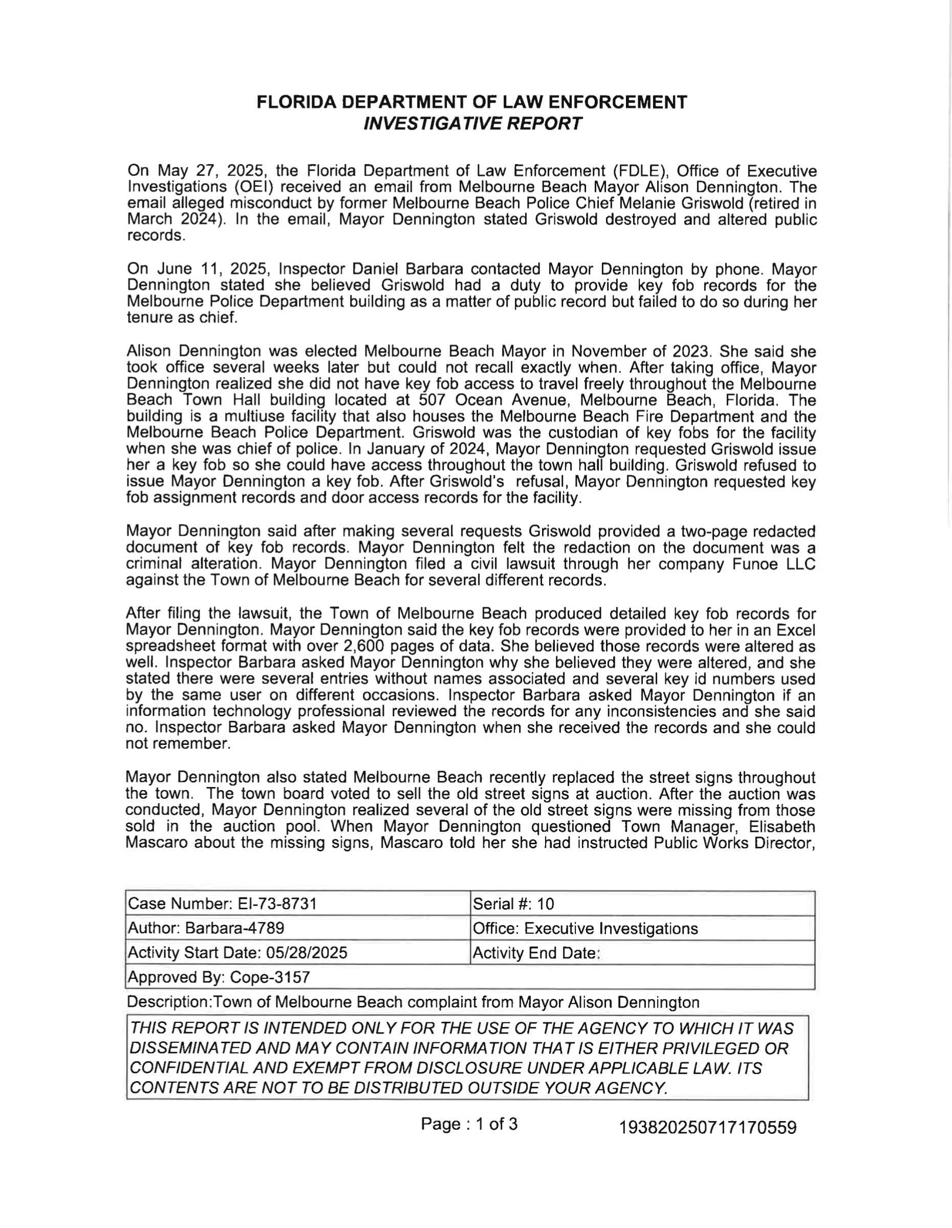 Please refer to our previous article detailing the outlandish claims made by Mayor Dennington and the initial response from FDLE.